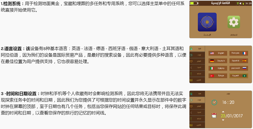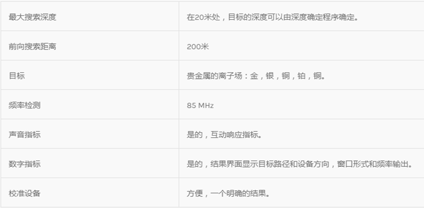 ? 該系統(tǒng)通過特殊的電子處理和處理系統(tǒng)工作,具有先進的搜索界面和設(shè)置,使用戶能夠調(diào)整系統(tǒng)和土壤的關(guān)稅以獲得性能和結(jié)果,保證可靠定位目標。