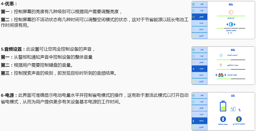 ? 與市場上的其他遠程檢測系統(tǒng)不同,它是一種現(xiàn)代系統(tǒng),其特點是智能舒適的設(shè)計以及高感測捕獲和感測系統(tǒng),并由雙發(fā)送和接收系統(tǒng)支持,它具有一個高帶寬傳輸模塊(高增益天線),可以傳輸敏感的感測波定位和刺激目標的范圍,以便信號捕獲和接收系統(tǒng)通過二進制刺激天線模塊可以監(jiān)視目標位置并將其顯示在屏幕上,結(jié)果界面上會出現(xiàn)多個音頻和數(shù)字指示器。