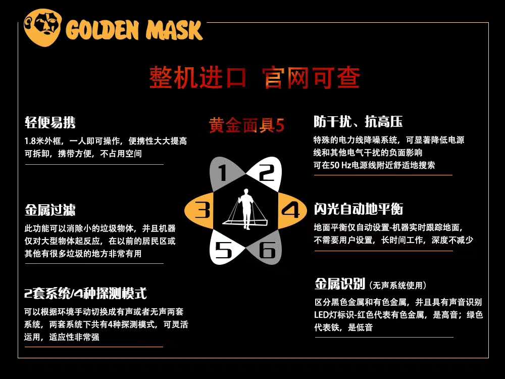 保加利亞黃金面具升級版PRO5大深度大范圍抗高壓脈沖金屬探測器